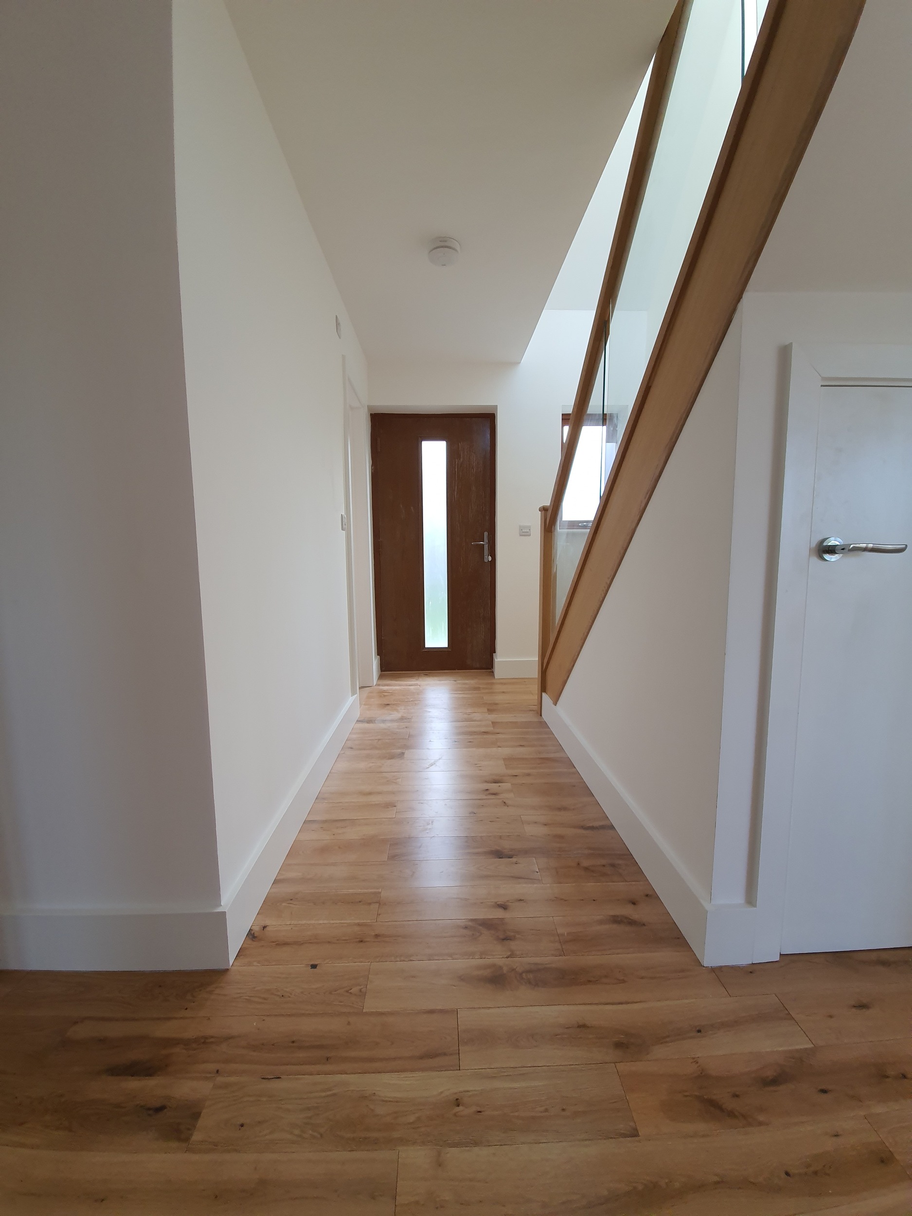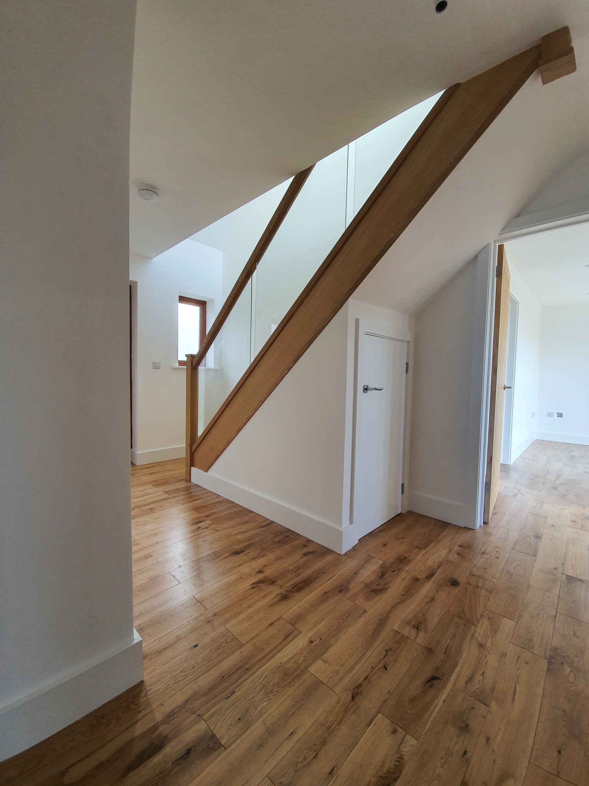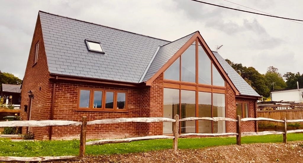 New build 3 bedroom house with glass apex overviewing the South Downs
